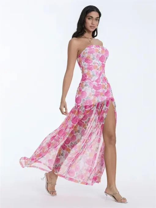 Women Evening Party Long Dress Backless Cut Out Strapless Straight Dress Summer Sexy Elegant Dresses